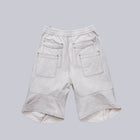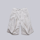 以彎折與外放打褶改良及膝短褲比例,視覺上更修長。褲型透過弧向剪接重塑輪廓,在靜止時偏移,在行走間呈現被風推動般的動態軌跡。
