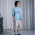 褲長落於膝下,寬鬆不雜亂,中性剪裁、男女皆適合。