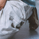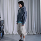 選用純棉搭配水洗工藝,布面呈現細微雲層褪色與適度硬挺,支撐立體結構的同時,在膝線與弧線處保留自然墜度,不僵硬、不貼體。